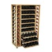 Botellero fabricado con listones de pino tratado, tapa y base de tablero de pino alistonado, trasera de tablero de pino laminado, teñido en color roble y una mano de barniz para fijar el tinte. Incorpora nueve baldas extraibles para localizar de manera individual las botellas.