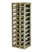 Botellero fabricado con listones de pino tratado, tapa y base de tablero de pino alistonado, trasera de tablero de pino laminado, teñido en color roble y una mano de barniz para fijar el tinte.