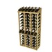 Botellero fabricado con listones de pino teñido en color roble y una capa de baniz para fijar el tinte, expone 12 marcas con 72 botellas, su destino son tiendas o vinotecas que pueden colocarlo pegado a la pared, ó hacer islas en el centro de la tienda juntandolos sobre sus traseras.