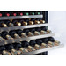 Las 15 baldas de madera con frontal inox facilitan el acceso y organización de las botellas, mientras que la iluminación LED interior realza su diseño moderno.
