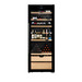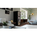Su puerta acristalada negra con tirador en barra aporta una estética sofisticada y contemporánea. En el interior, las baldas de madera natural fijas y deslizantes, el estante de presentación y los cajones permiten una organización flexible y elegante.