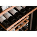 En su interior, los estantes de madera extraíbles facilitan el acceso y la organización de la colección, complementados por una iluminación LED blanca que realza las botellas sin emitir calor. La puerta acristalada con protección UV protege el vino de la luz exterior, y su nivel sonoro de solo 35 dB la convierte en una opción ideal para cocinas abiertas o espacios de convivencia.