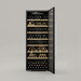 La puerta ciega totalemnte opaca garantiza que los vinos esten totalmente exentos de recibor rayo UV y con un rango regulable de 5ºC a 22º C una humedad regulada de forma automática se reproducirán las condiciones identicas a una bodega de vinos tradicional.