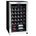 Vinacoteca para la conservación, con capacidad para 34 botellas de vino ,de la marca La Sommelière. Con compresor silencioso, bandejas metalicas y un consumo muy eficinete Clase G, antigua A, es una de las opciones más interesantes para vinotecas de capacidad media gracias a su compresor silencioso.