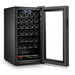 Es una vinoteca de libre instalación con poco fondo 45 cm con 1 zona de temperatura con un rango amplio de temperaturas gracias a su compresor y 8 baldas metalicas para tener las botellas organizadas e iluminación suave en su interior.