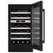 El diseño elegante en negro, combinado con un marco sin juntas y cristal triple anti-UV, protege las botellas de los rayos dañinos mientras aporta un toque sofisticado. Su instalación encastrable bajo encimera de 45 cm de ancho la hace perfecta para cocinas modernas y espacios reducidos.