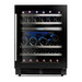 Su diseño moderno se distingue por la puerta de triple cristal con protección anti-UV y marco negro, el tirador en acero inoxidable y una cuidada iluminación interior LED, que realza la presentación de la colección. Incorpora bandejas de madera deslizantes con frontal en acero inoxidable, ofreciendo una organización cómoda, segura y elegante. El control digital con display LED azul permite un ajuste preciso de la temperatura en cada zona.