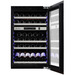 En el interior, sus estantes telescópicos de madera con frontal de acero inoxidable, incluido un estante de presentación, ofrecen una organización cómoda y elegante. El control electrónico con display LED azul y la iluminación interior LED completan una experiencia de uso precisa y sofisticada.